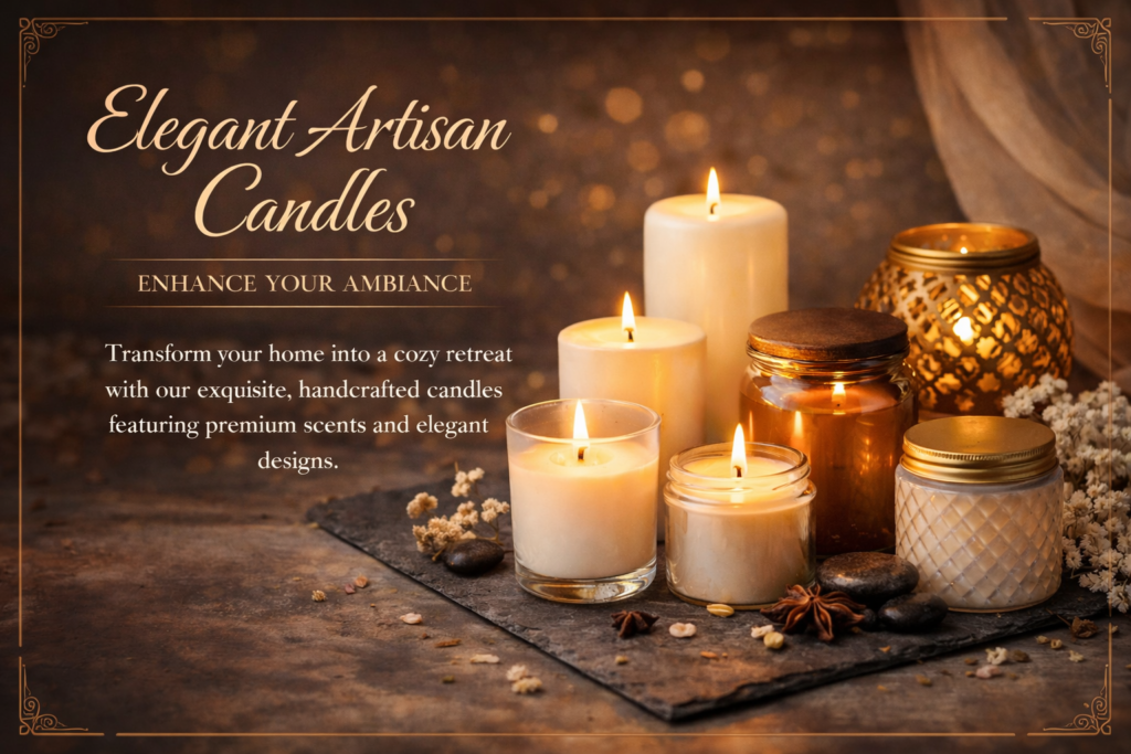 Our mission is to create handcrafted home décor that adds comfort, safety, and elegance to your space. Each candle is made from premium materials, including 100% soy wax and cotton wicks, ensuring a non-toxic, ecofriendly alternative that burns cleaner, lasts longer, and produces less soot.